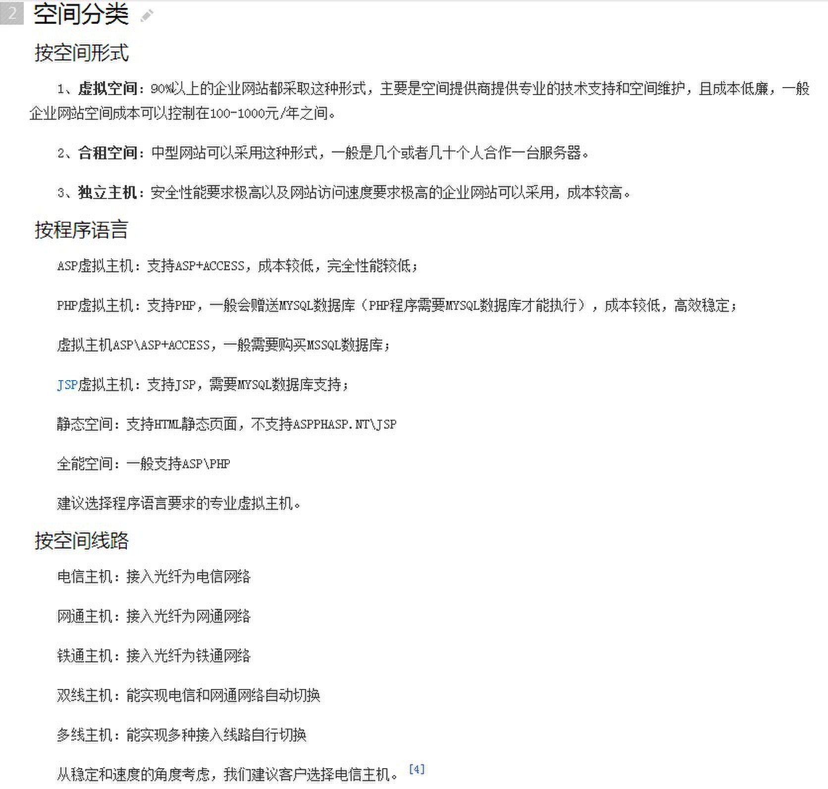 其次:网站建设,选择网站空间要注意的四个问题。对于空间的定义,这一点我不说大家也应该知道,图2是空间的一些小的定义。一个稳定的服务器空间对于一个网站的优化有多么重要。众所周知网站的优化说白了就是搜索引擎定期更新你的网站,给你网站权重,更新你网站关键词的排名,提高网站的流量。在国内空间服务商也不少。而国内外的空间又不一样,国内外的空间有什么同异呢?这点我就不详细的给大家分析了。只要你去百度一下,你会发现关于国内外服务器空间的优劣有很多文章可以分析。在这里主要的是一个网站的空间必须要稳定。一个空间的稳定性对于一个网站前期的收录,网站的初期新闻的质量一定要高。所以在我看来前期网站的收录还是比较重要的。