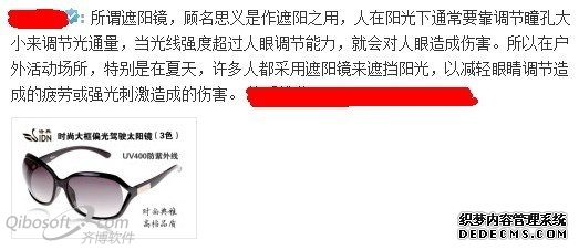 此则博文是从梦想为切入点,博文主题明确,内容组织、字数的控制恰到好处,让粉丝读后倍感亲切,自然会得到评论与推广。有那么一部分人可能对相关产品的知识、生成过程、使用方法等感兴趣,那么发表博文时不妨加入一些类似上述的隐私性质的话题,那些对于人来说容易忽略,但是确实挺关心,挺八卦的事情。这样就会给粉丝带来新鲜感与求知欲。有一则博文如下图所示,相信看后有种想转载的冲动,因为博文的内容让我们知道了何为遮阳镜,给我们带来了关于遮阳镜方面的知识,调动起了求知欲,很多人出于健康的考虑,都会选择继续去阅读更多内容。